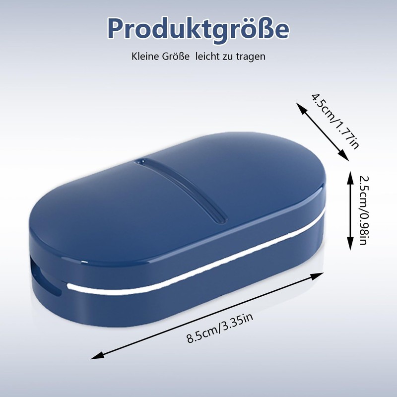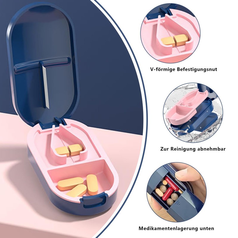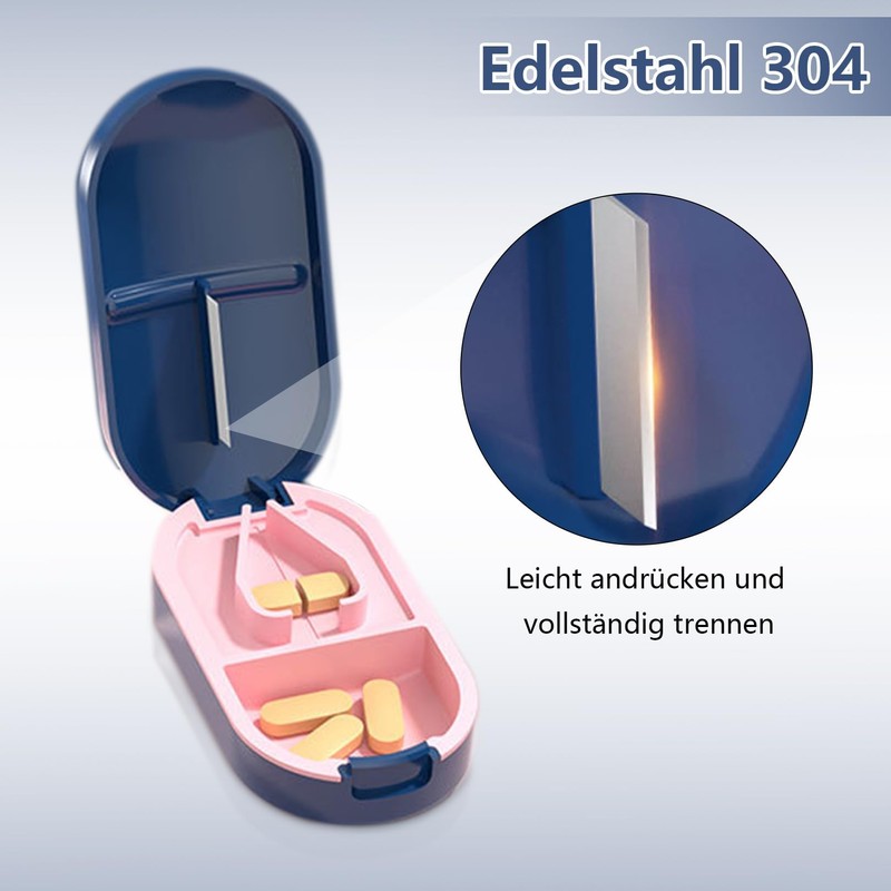 - The pill divider is equipped with a practical storage compartment in which you can safely store the divided tablets. This is especially useful for transportation and ensures that you can keep your pills close at hand and hygienically - ideal for travel or everyday use.