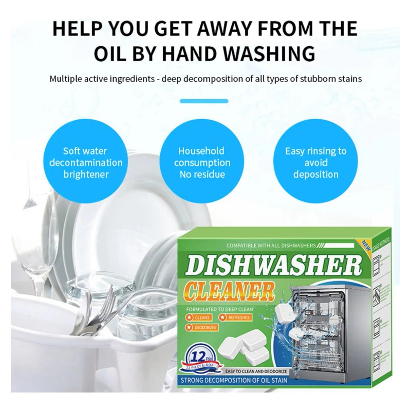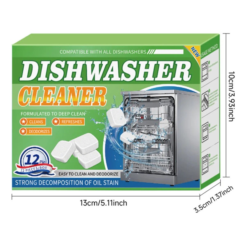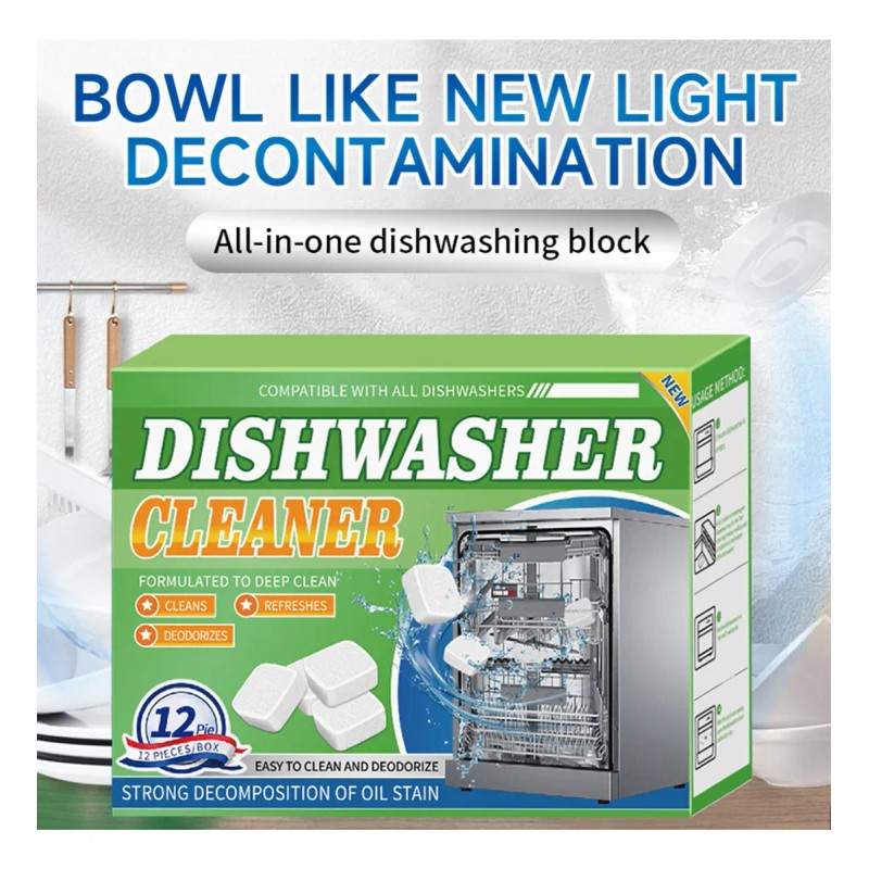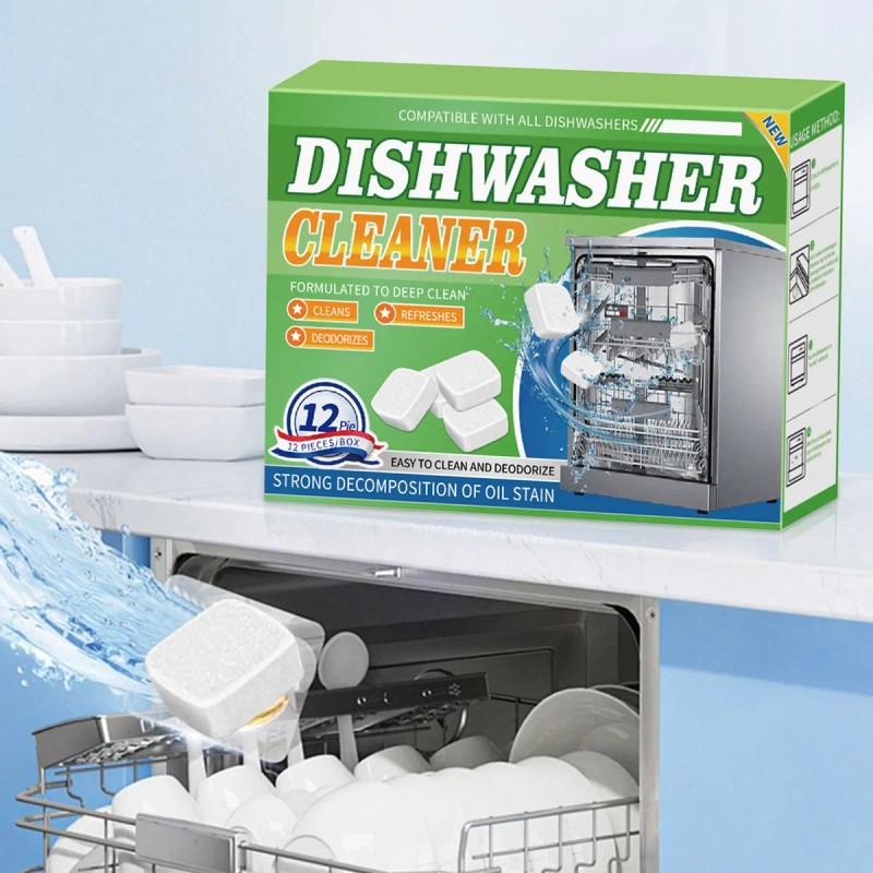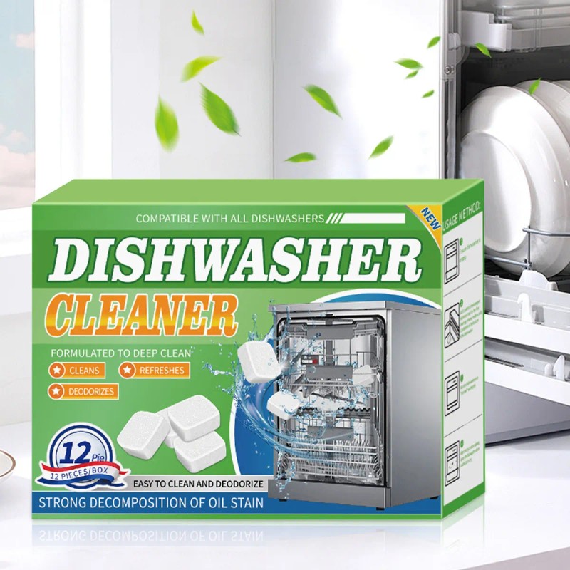 12PC Dishwasher Cleaner Effervescent Tablets For Heavy Grease And Stain Removal |