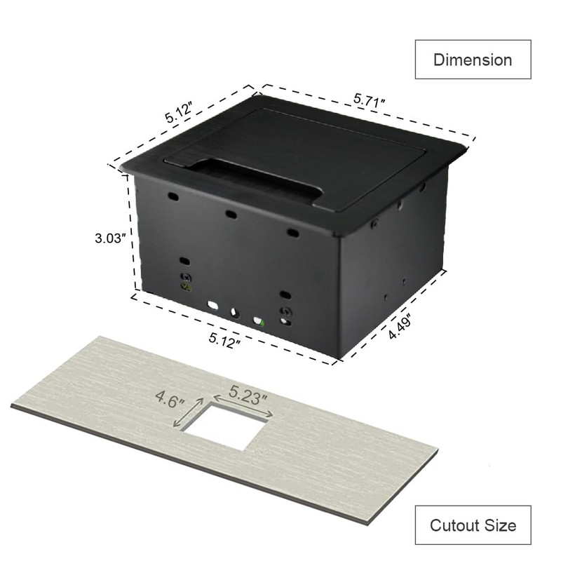 - Panel size of multimedia power box: 5.71" x 5.12"(145 x 130mm), opening size: 5.23" x 4.6"( 133mm x117mm)