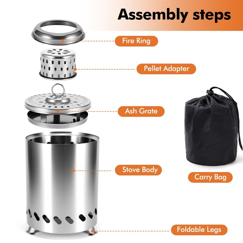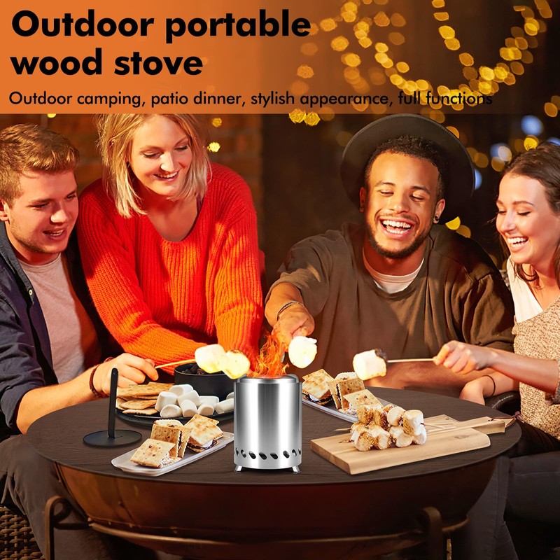 This Tabletop Fire Pit solves all these problems. Its smokeless design eliminates irritation from smoke, while the durable stainless steel construction ensures longevity. Compact and lightweight, it’s easy to transport and store, making it ideal for wild camping equipment, camper van gifts, or as a thoughtful travel gift. With support for pellets or kindling wood, you get authentic flames without the mess. The included travel bag adds convenience, and the sleek design fits seamlessly into any outdoor setting. Perfect for fire pit camping or backyard relaxation, this fire pit transforms any space into a warm, inviting haven.