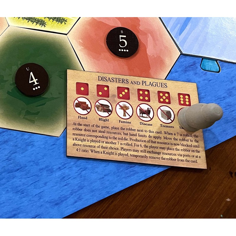 Tabletop Monthly Disasters and Plagues Robber Scenario compatible with Catan's Settlers of Catan