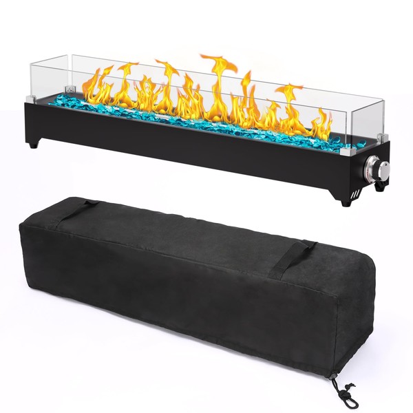 - [Complete Package] - The tabletop fire pit propane includes everything you need for a perfect outdoor experience: an 4ft hose with an adjustable valve, windscreen, rain and sun cover, 6.3lb glass beads, and a comprehensive parts kit with instructions. The included waterproof fire pit table cover, made from durable 600D Oxford fabric, protects the product from rust and sunlight, ensuring it remains in top condition.