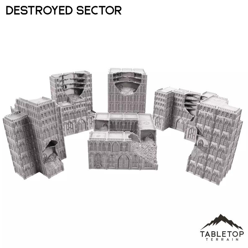 The Destroyed Sector 8mm Scale Building Pack is a collection of 5 fully assembled "Epic" 8mm Scale buildings for use with small scale sci-fi tabletop wargames. Each building is highly detailed and has a hollow interior. Fully compatible with Legions Imperialis or Adeptus Titanicus.