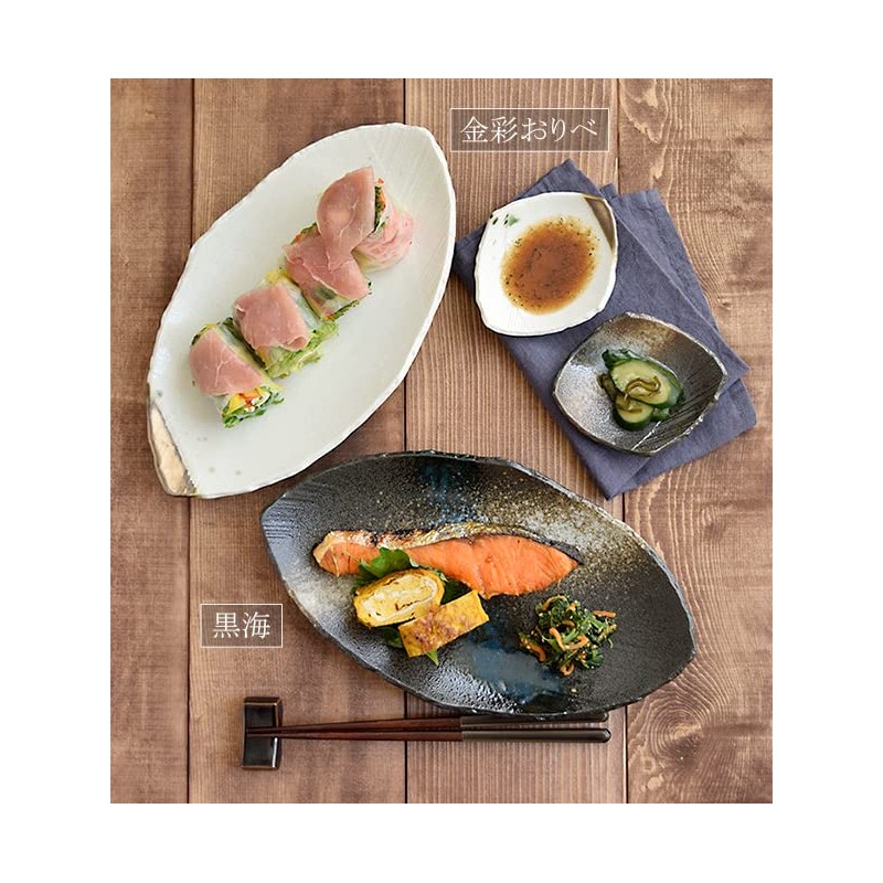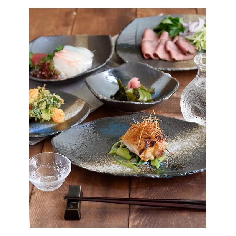 Tableware East ks-011 Japanese Tableware, Long Plate, Deformed Rhombic Shape, Black Sea