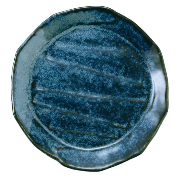 Tableware kt-053-01 Japanese Tableware, Medium Plate, Line, 6.3 inches (16 cm), Indigo Snow