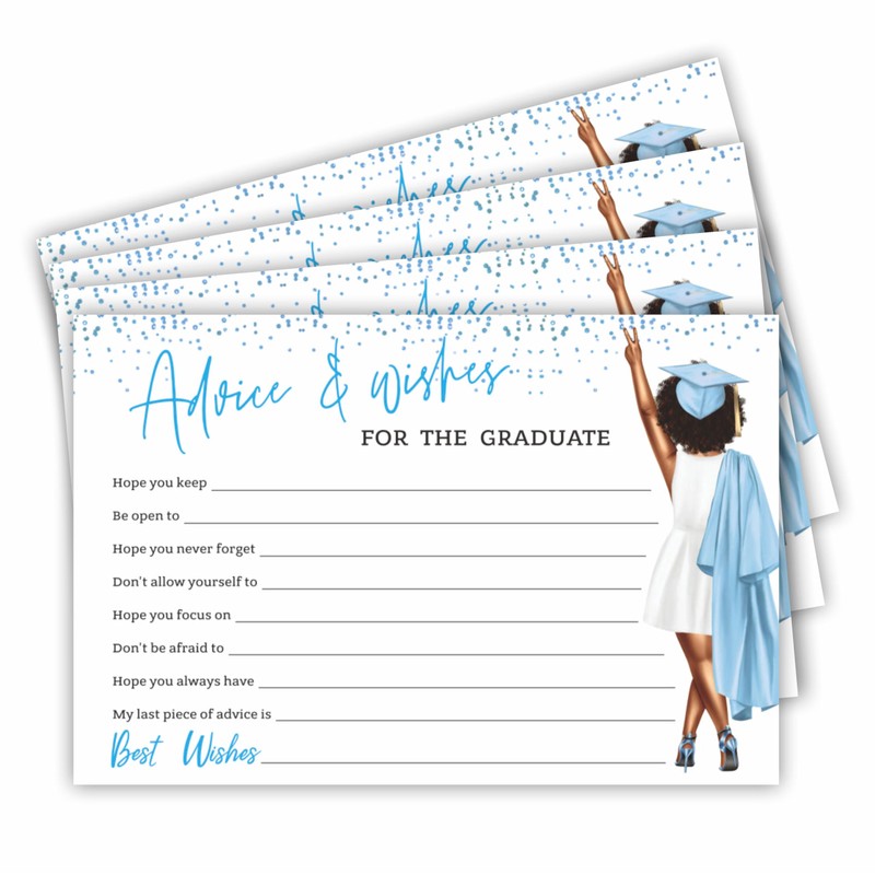 Tabyon 30 Advice & Wishes Cards For The Graduation - Blue Grad Girl - Confetti Double-Sided Fill In Style Advice Cards For High School, College, University, Party Favor, Decorations & Supplies-B04