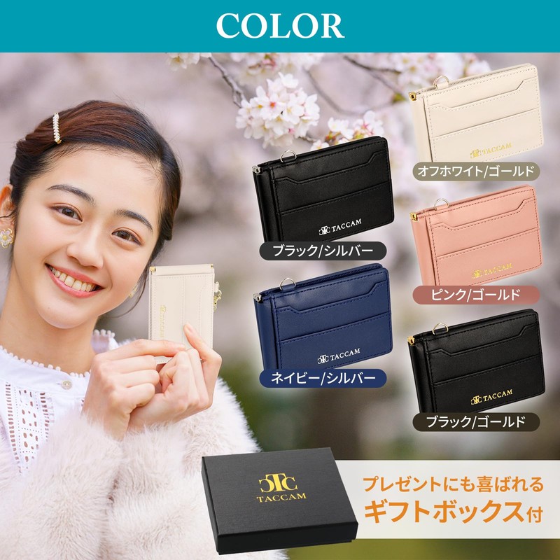 Simple & elegant design makes it easy to take with you wherever you go. Available in 4 colors, black, pink, white, and navy, you can choose your own style. With the concept of "carrying beauty of functionality", the abundant 11-pocket design supports everyday card management. Made of durable material for a long lasting sense of security. The slim shape fits perfectly in your bag or pocket, making it an excellent item for any occasion. A pass case with a total of 11 pockets for outstanding storage. With 5 pockets on the front and 6 inside pockets, you can store your IC cards, driver's license, credit cards, and even bills. Butterfly closure and sliding window allow for smooth card insertion and removal In addition, it comes with a button that opens and closes so it won't lose its shape even if you put a lot Combining design and ease of use, this pass case will make your life more comfortable. A pass case that can be used for everyday use or as a gift. Made of high quality microfiber leather, it gives a luxurious feel like genuine leather. The retractable reel strap can be attached to the bag and is smooth to the touch with the ticket gate. 5 attractive colors for you to choose, including black and gold, and off-white & gold. It comes with a special gift box, making it a perfect gift.
