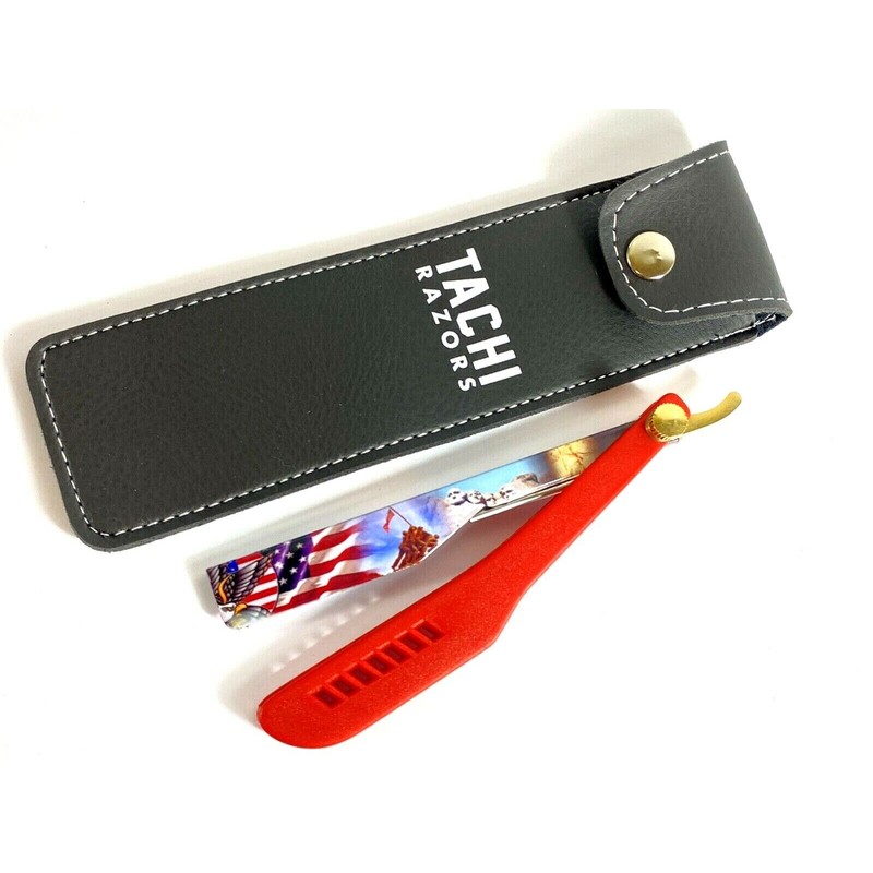 TACHIUSA NAVAJA FOLDING KNIFE STRAIGHT SHAVING RAZOR AMERICAN FLAG SHAVETTE +10 BLADES