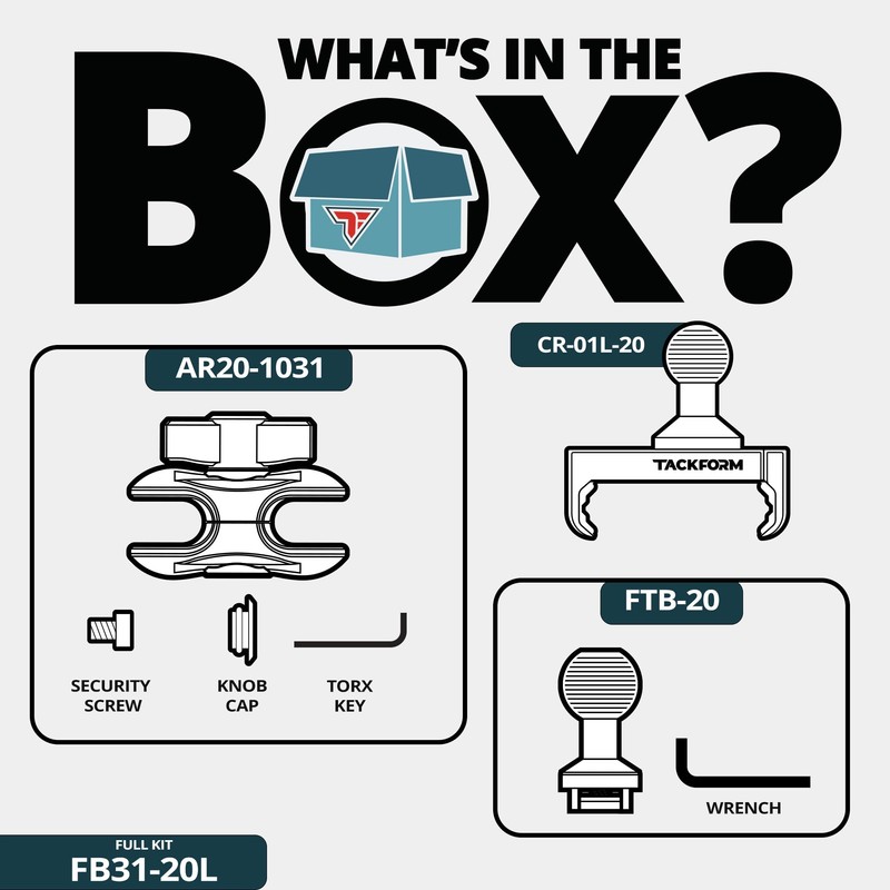 - ONLY COMPATIBLE WITH TACKFORM FAST TRACK BRACKETS: Please note that these kits are specifically designed for our FAST TRACK brackets. They will NOT work with our SLIM TRACK bracket systems as the base mounts are different. We offer similar kits for our SLIM TRACK systems.