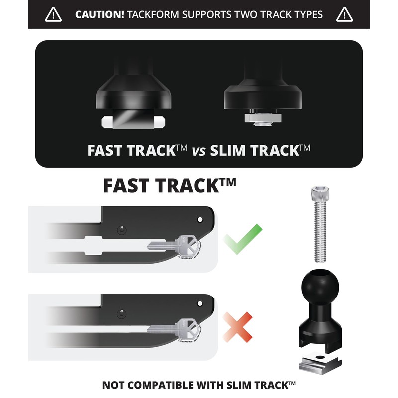 - ONLY COMPATIBLE WITH TACKFORM FAST TRACK BRACKETS: Please note that these kits are specifically designed for our FAST TRACK brackets. They will NOT work with our SLIM TRACK bracket systems as the base mounts are different. We offer similar kits for our SLIM TRACK systems.