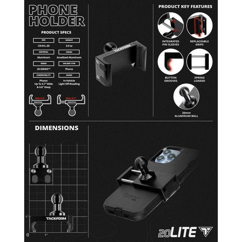 Tackform Fast Track™ Base Mount - 20LITE Spring Cradle Phone Holder | Compatible with All iPhones, Galaxy Devices, More | 5" Aluminum Arm | (Base Mounts are ONLY Compatible with Fast Track™ Brackets)