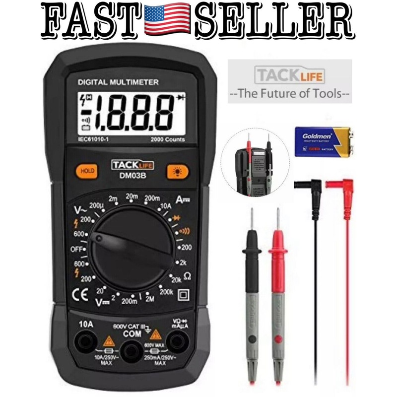TACKLIFE Multimeter, DM03B Electrical Tester 2000 Counts Manual-Ranging Amp Volt Ohm Meter Diode and Continuity Tester Voltage Detection with LCD Display Backlight