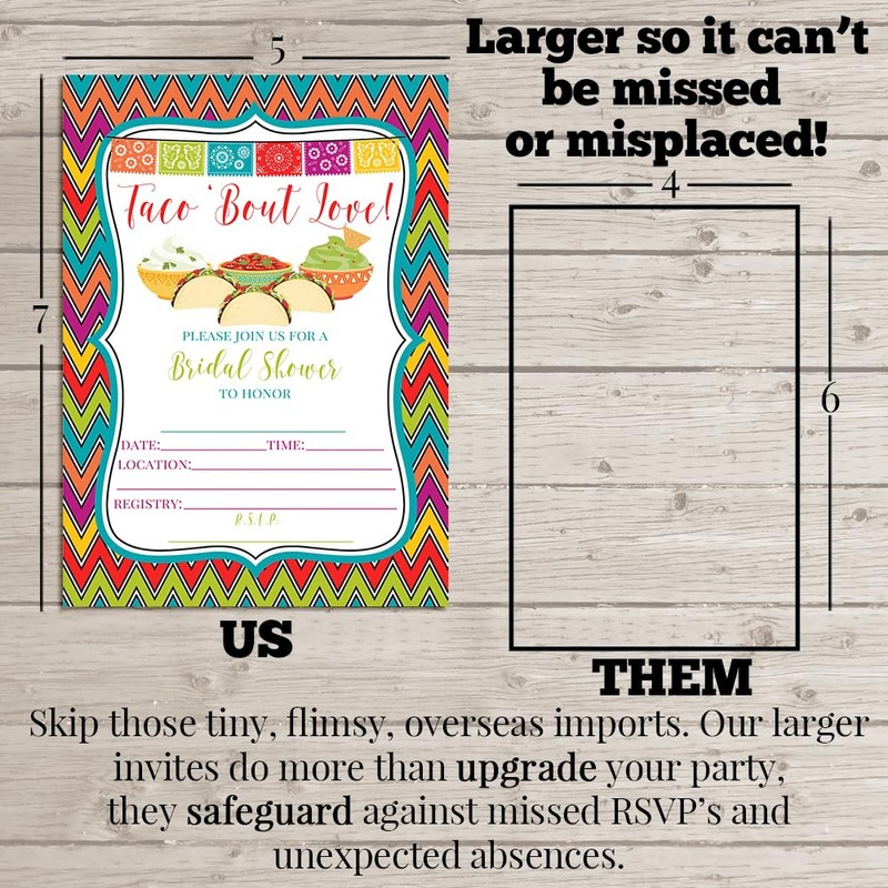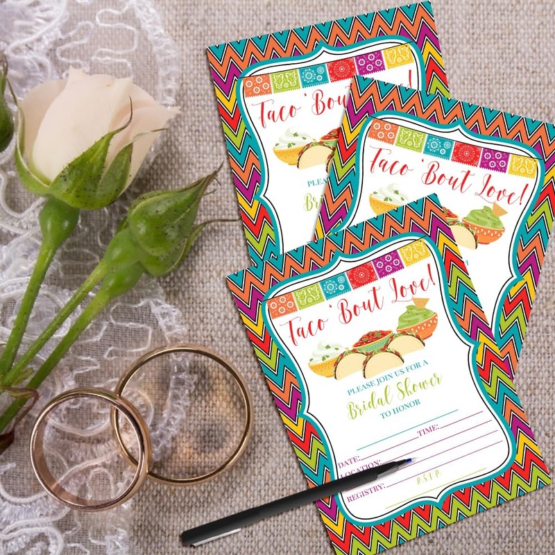 Taco 'Bout Love Bridal Shower Invitations - 20 5x7 Fill In Colorful Fiesta Themed Cards with Envelopes - Fun Mexican Food Wedding Shower Invites by AmandaCreation