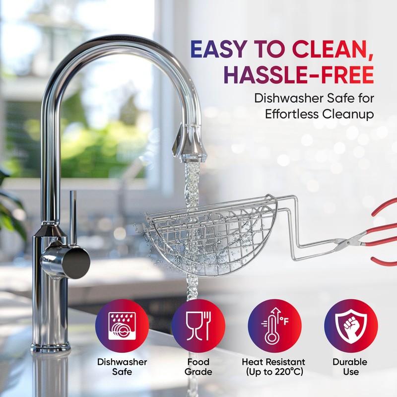 - HEAT-RESISTANT & COMFORTABLE GRIP – The heat-resistant construction ensures safe handling in hot oil, while the ergonomic handle provides a secure and comfortable grip for easy use.