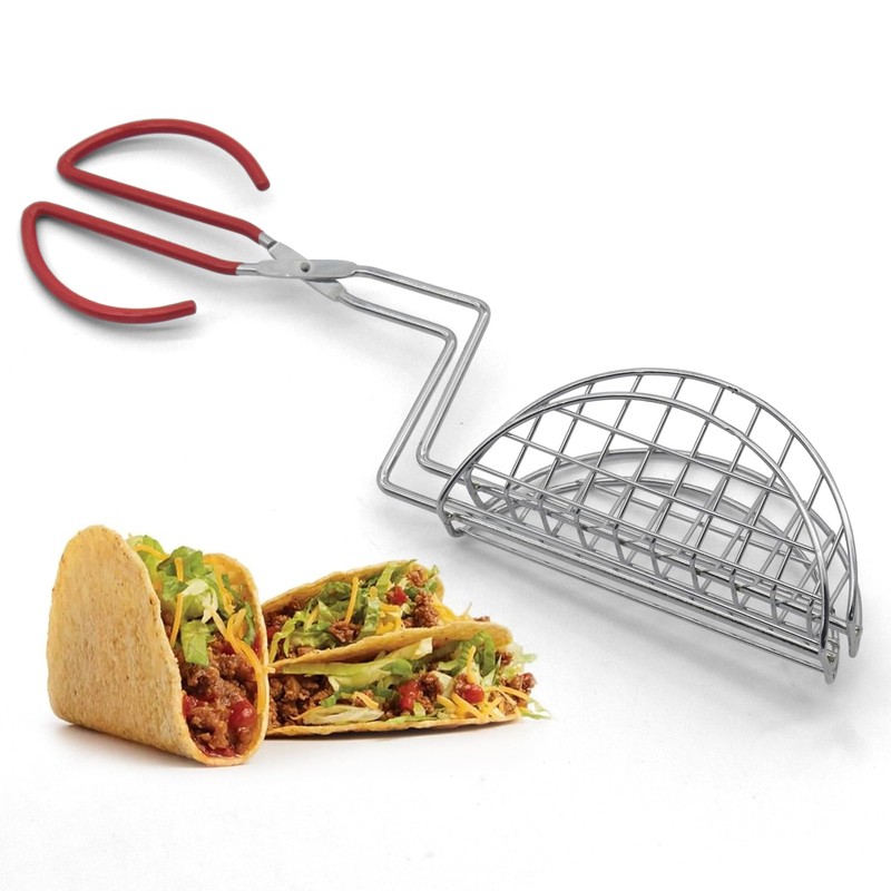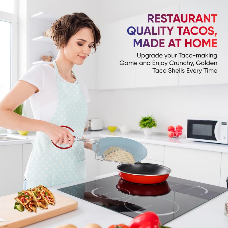 - CRISPY TACO SHELLS MADE EASY – Create perfectly crispy, evenly fried taco shells at home with ease. The tongs securely hold the tortilla in place, preventing it from folding or losing shape during frying.
