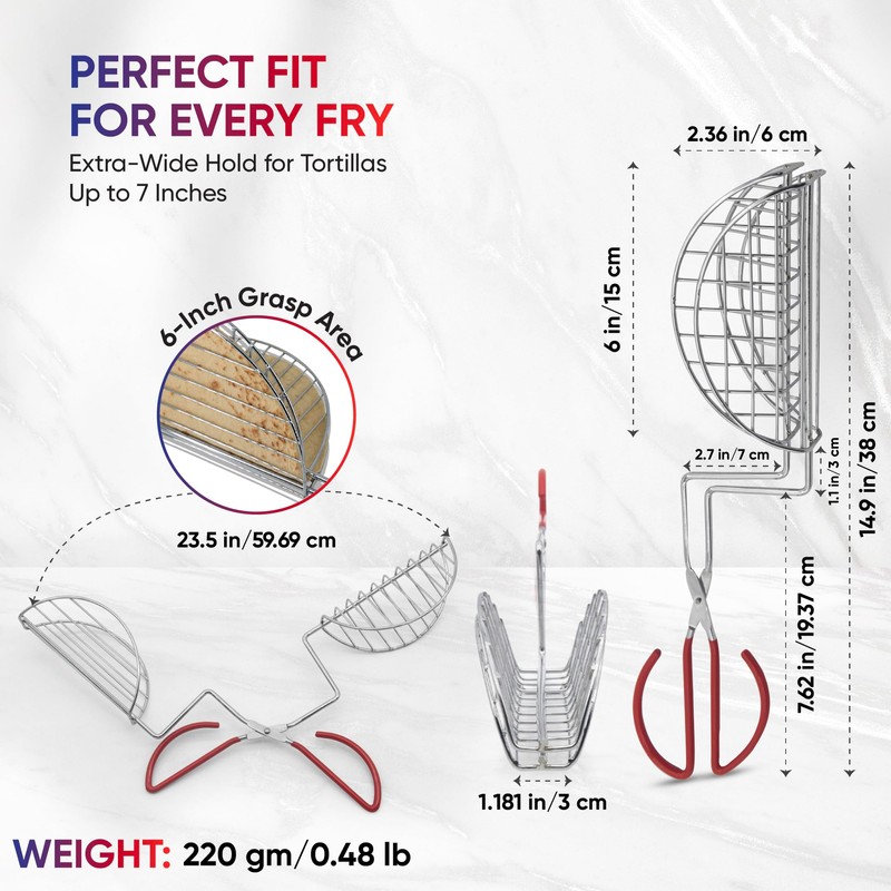 - VERSATILE KITCHEN TOOL – Use them not only for frying taco shells but also for making crispy pita bread, empanadas, and other fried favorites.