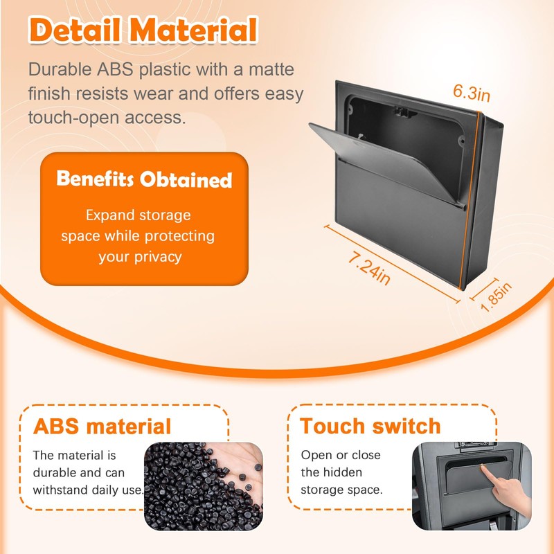 - [Premium ABS Material for Durability] Constructed from high-quality ABS plastic with a sleek matte finish, this organizer is built to withstand everyday bumps and driving vibrations. The touch-to-open feature makes it more convenient and efficient to access your stored items.