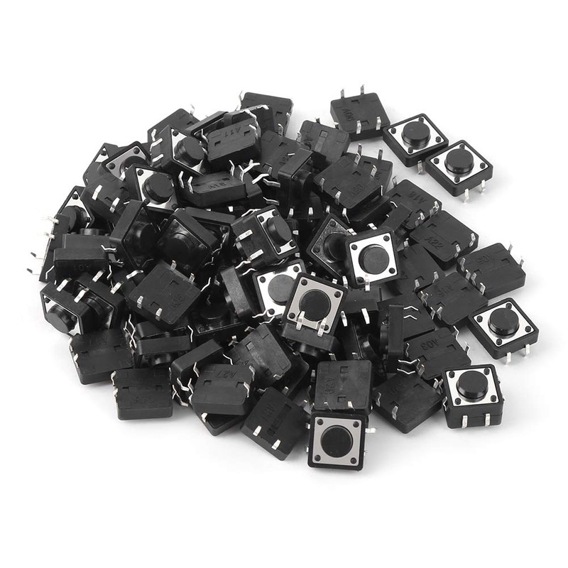 Tact Switch, Push Button Switch, Tactile Push Button Switch, 100pcs Momentary Tactile Push Button Switch, 12 x 12 x 5mm, Interruptor de tachuela con restablecimiento automático, Peso ligero