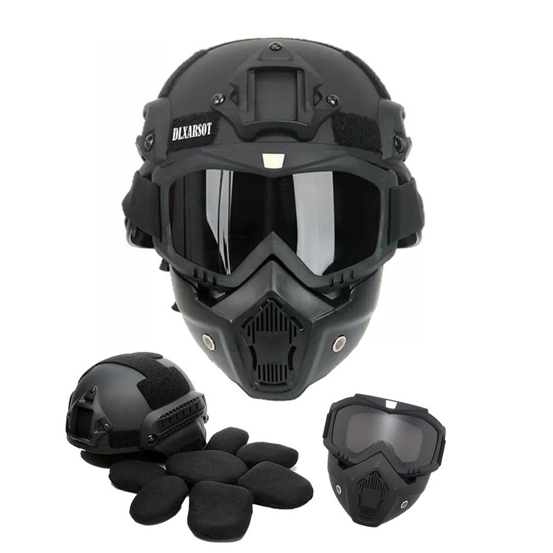Tactical Airsoft Helmet and Mask,Detachable Full Face Mask Goggles with NVG Mount and Side Rail,Military Tactical Airsoft Gear