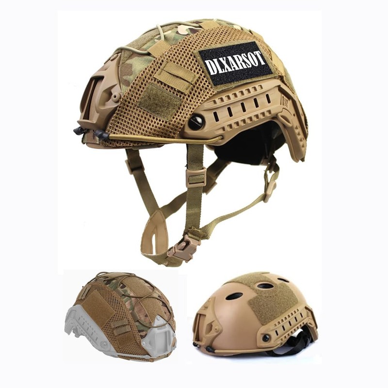 Tactical Airsoft Paintball Fast Helmet with Helmet Cover, PJ Type Multifunctional Protective Helmet with NVG Mount
