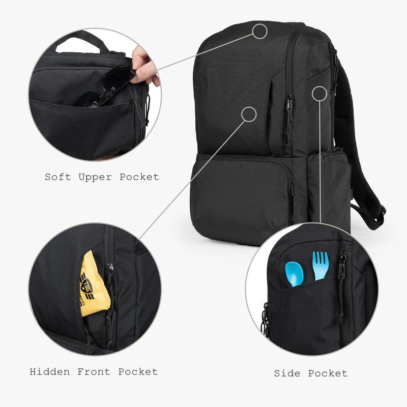 - Features a dual-compartment setup: one for baby essentials with divided pockets, and the other with a removable cooler for bottles and snacks.