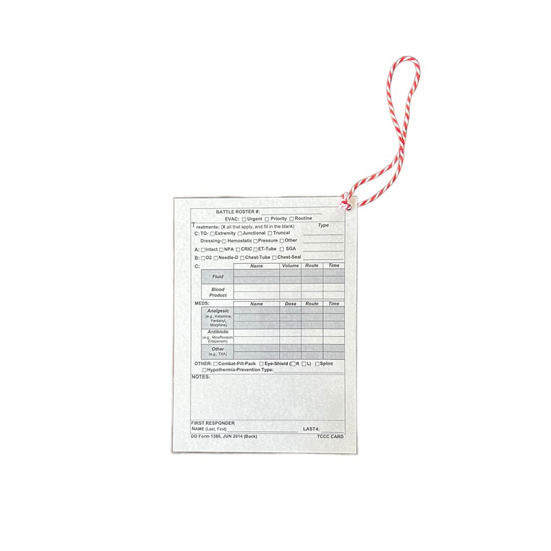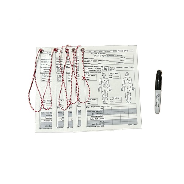 Tactical Casualty Combat Care Card 5 Pack Laminated with Strings and Mini Permanent Marker