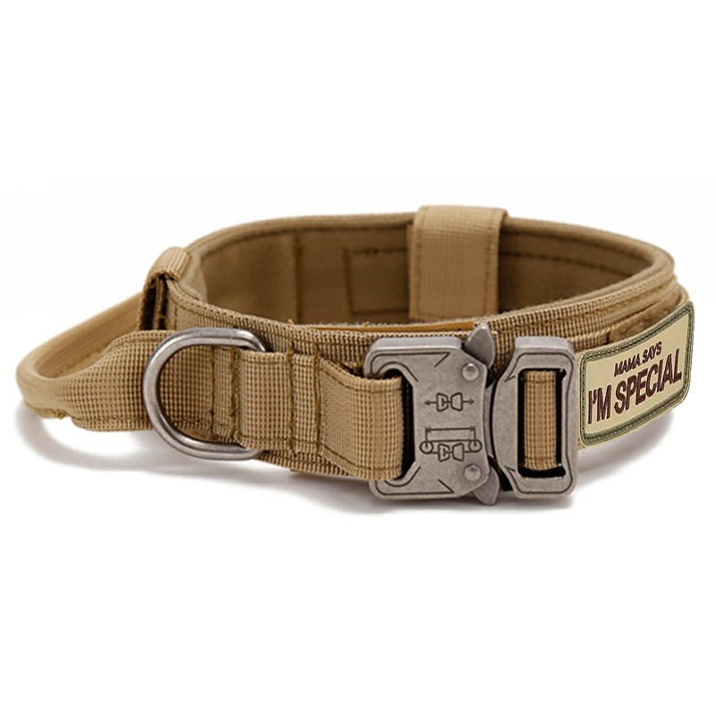 - 【Fashion Design】 Military tactical dog collars is made ofThickened military high-quality nylon material. Super strong stainless steel heavy duty metal buckle with a layer of electroplating process is done on the surface. Tactical collar set with a soft padded lining to prevent chafing for your dog's skin and hair (Note: The item does not contain Patch 'Mama Says I am Special' Patch.)You can decorate dog collar well, make the collar special and increase the beauty.