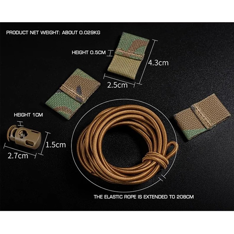 Tactical Flag Bungee Elastic Fastener Strap Shock Cord Retention Molle Webbing Loop Cord Lock Secure Plate Carrier Attachment