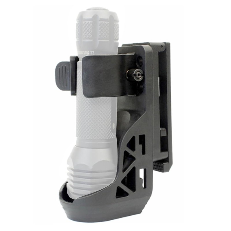 • ADJUSTABLE BELT CLAMP: Flashlight holder adopts innovative locking designs, an adjustable belt clip can be adjusted the waistband width to fit your duty belt from 29-63mm / 1.14"-2.48". Capable of being mounted onto a duty belt, shooters belt, military or duty belts.