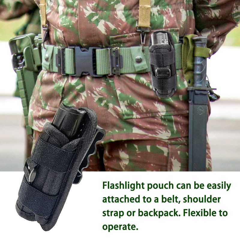 Tactical Flashlight Pouch Holster, Rotatable Flashlight Holder Belt Clip Tactical Torch Carry Case with 360 Degree Carabiner Reel Clip for Outdoor Hunting Camping Hiking (Black)