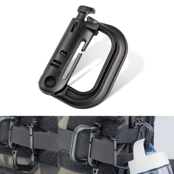 Tactical Gear ABS Plastic Molle D Ring Shape Buckle, Super-Handy Spring Snap Key Chain Clip Hook Screw Lock Buckle, 4PCS (Black)