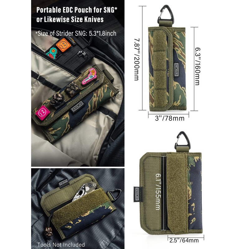 - 【MULTIFUNCTIONAL POUCH】 Securely holds small flashlights or other multi-tools. It's a nice EDC pouch to save the SMF GG when you are on the outside. There have a reserved triangular space on the left inside that is custom-made for lanyards. The rear pouch with the YKK zipper can be a coin purse to keep some little coins.(PS: All EDC gear and patches that are shown in the images are not included.)