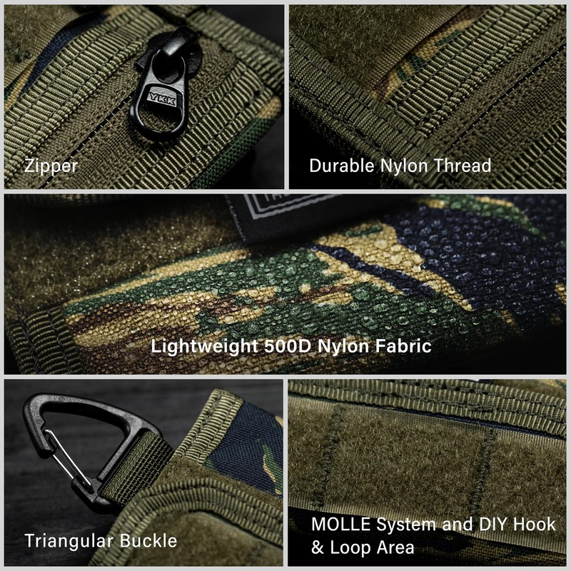 - 【UPGRADE DIY HOOK & LOOP AREA】 Velcro design, our Molle tool pouch reserve the 8 DIY HOOK & LOOP areas for personalized decorative patches, everyone can paste a variety of personality magic tags. It will be very cool if everyone can create a unique compact tool bag he wants.