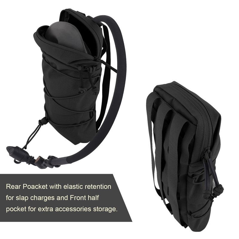 Tactical General Purpose Pocket 12x5 GP Pouch 1.5L Hydration Bag Carrier Backpack Organizer MOLLE + Belt (BK)