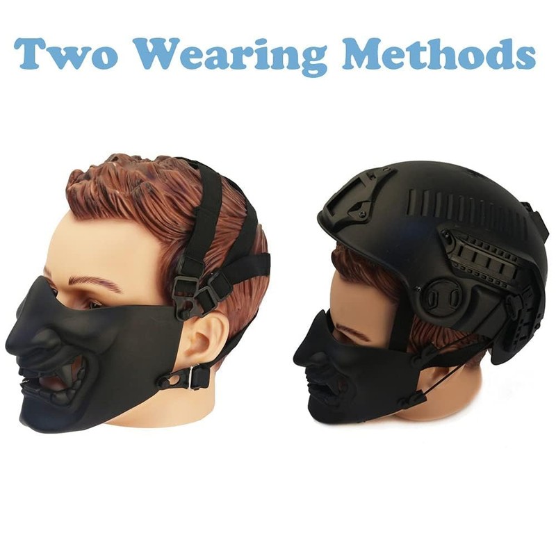 Tactical Half Face Masks, Evil Demon Hannya Kabuki Samurai Oni Masks Airsoft Protective Masks for Cs War Game Halloween Party (Black)
