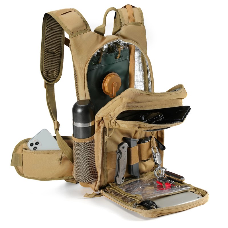 - Well Made - Constructed by lightweight yet durable 1000D Nylon and sturdy zippers to prevent tearing with use. Our hiking hydration backpack has comprehensive features for hiking adventures and outdoor sports. PLEASE NOTE that this carrier doesn't contain water bladder.