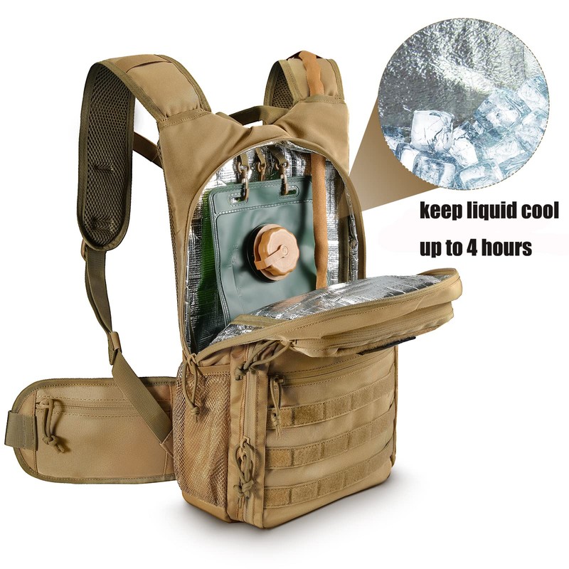 Tactical Hydration Pack Backpack, Military Molle Water Backpack for Hiking Running Cycling Climbing Hunting Fishing(No Water Bladder Included) (Tan)
