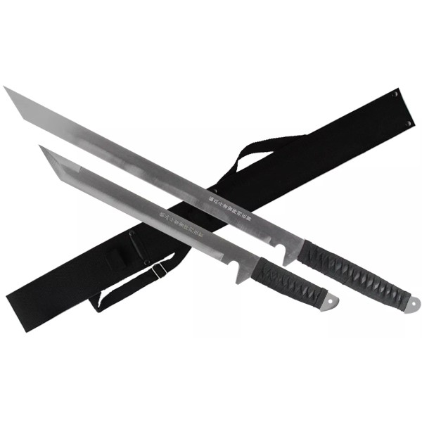 Tactical Master 2 PCS Full Tang Ninja Machete Zombie Tactical Survival Katana - Silver
