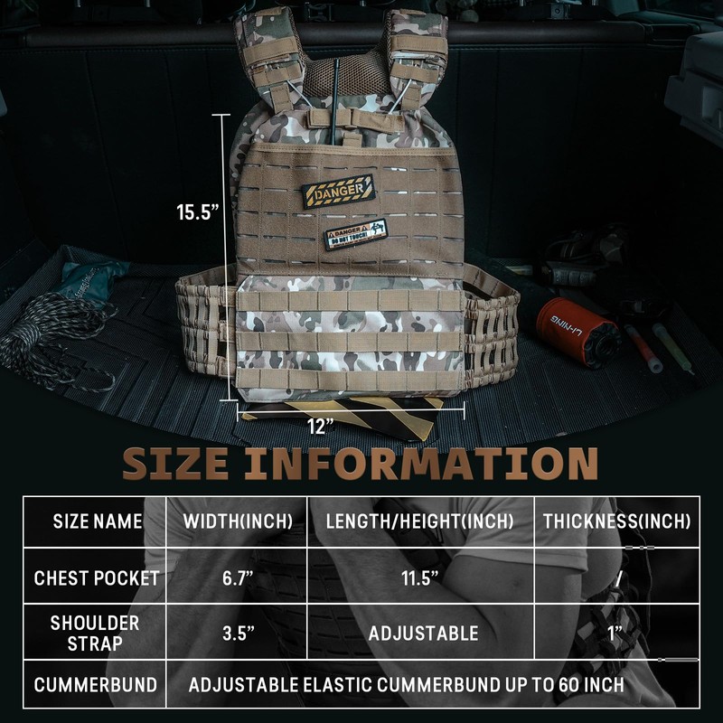 - DURABLE CONSTRUCTION: Weighted vest have multipockets lock firmly holds plates in place during transportation. molle carrier vest is designed for intensive training and is strong enough to handle even the most strenuous workouts;