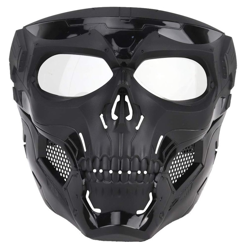 Tactical Protection Adjustable Skull Full Face Mask, Suitable for Paintball Shooting, CS War Games, Halloween Parties, RolePplaying, Movie Props, Etc., BK