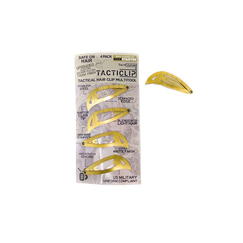4 Pack - Light Tan Tactical Hair Clips, Multitool Snap Barrettes - Multi-Functional Keychain Metal Multi Tool - Box Cutter, Serrated Edge, Raptor Claw - Anti-scratch Surface