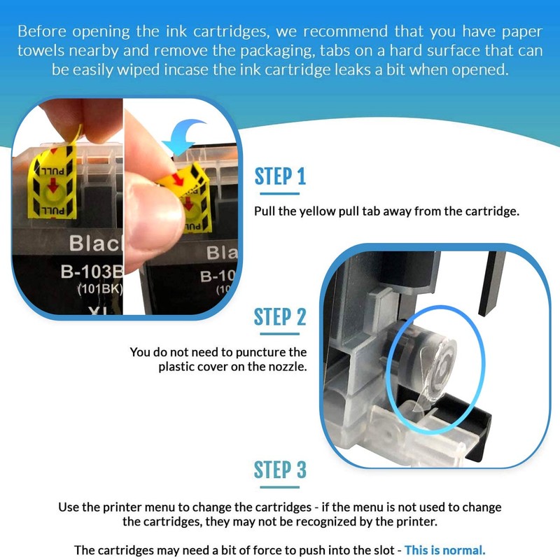 - TacTink ink is formulated to provide excellent color matching for true-to-life photos and crisp text; This compatible brother lc103xl lc101 ink cartridges come with the lastast chips and are engineered to fit exactly into your; Print Smooth, won’t clog print head. High color rendering index, restore the true color of products. 100% compatible with original brand ink.