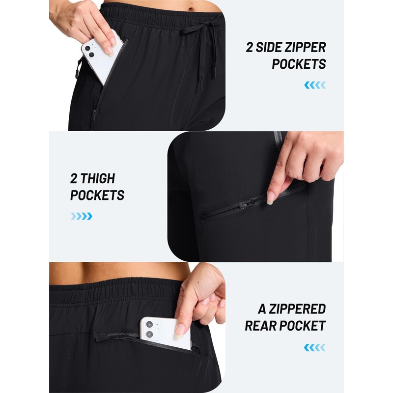 - Five Pockets£ºFeaturing 2 side waterproof zippered pockets, 2 thigh zippered pockets and a rear zippered pocket to safely store your phone, keys, and essentials.