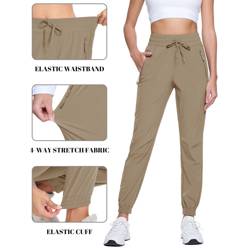 TACVASEN Joggers for Women Lightweight Quick Dry Hiking Pants with Pockets Athletic Casual Water Resistant Khaki L
