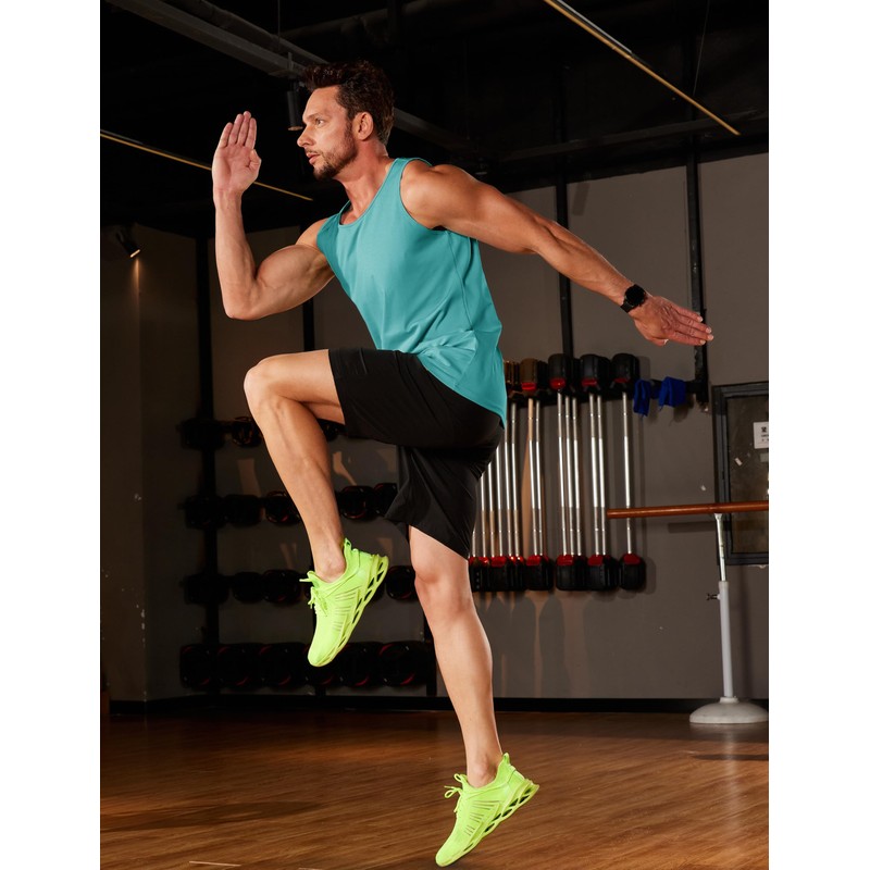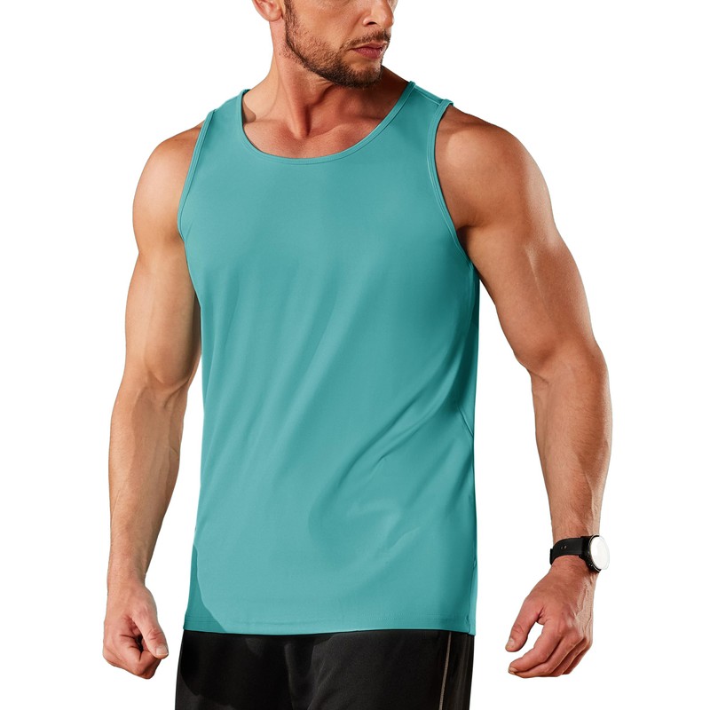 TACVASEN Men's Running Tank Tops Beach Swim Shirts for Summer Muscle Gym Workout Sleeveless Quick Dry Green