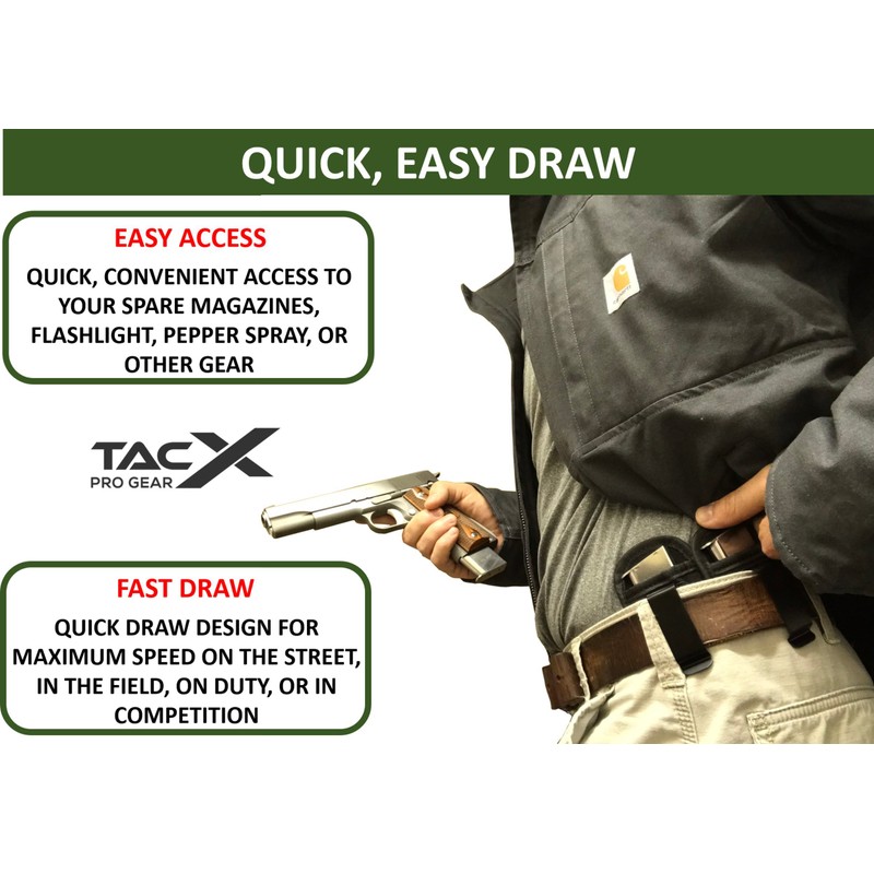 TacX Pro Gear Universal IWB Pistol Mag Pouch | Inside The Waistband Magazine Holder | Single and Double Stack Magazine Concealment Holsters for 9mm/.40/.45/.380 (2 Pack - Large & Small)