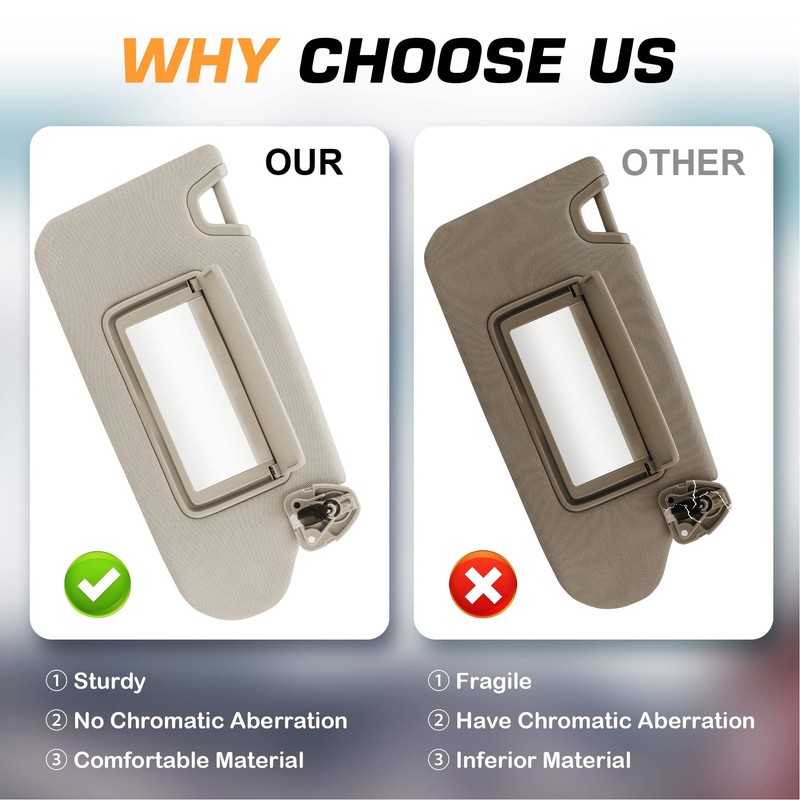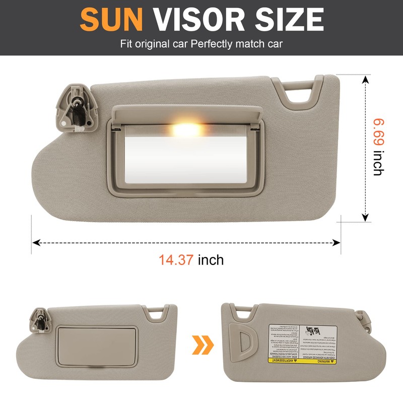 - 【Feature】Left Driver Side Sun Visor with Mirror and Light without Sunroof, Beige