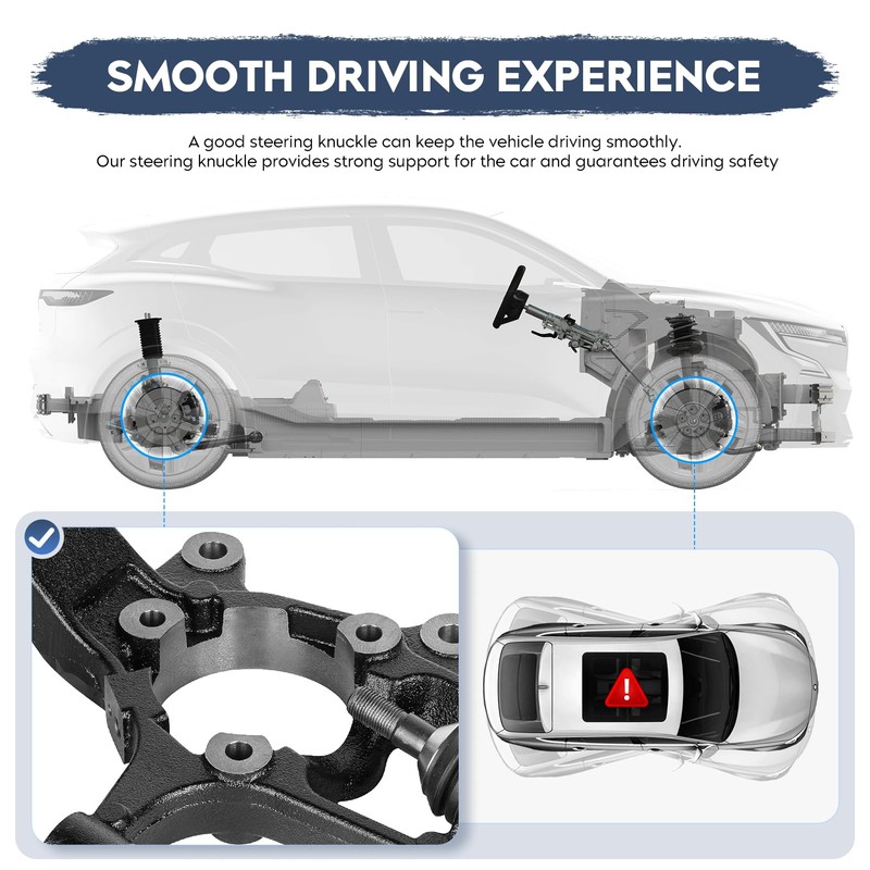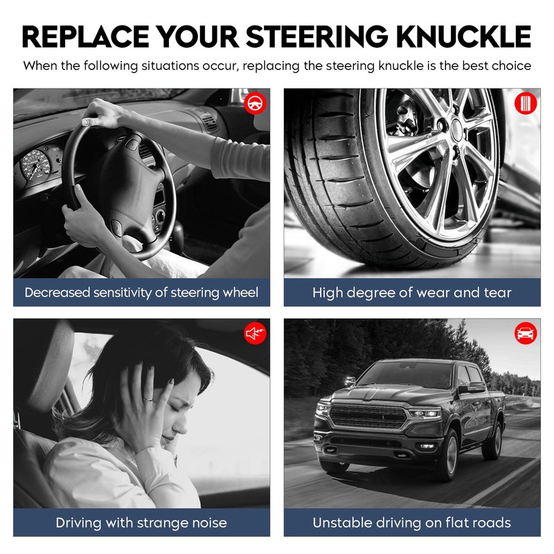 - Solve Problems: The steering knuckle can help you solve problems such as difficult braking, difficult wheel slippage, uneven tire wear, and unusual wobbling.