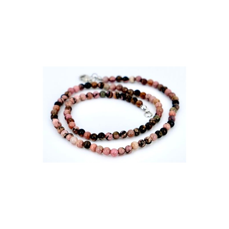 Taddart Minerals - Pink Black Necklace Made from Natural Gemstone Rhodonite with 4 mm Balls and 45 cm Length - Handmade, Rhodonite, Rhodonite