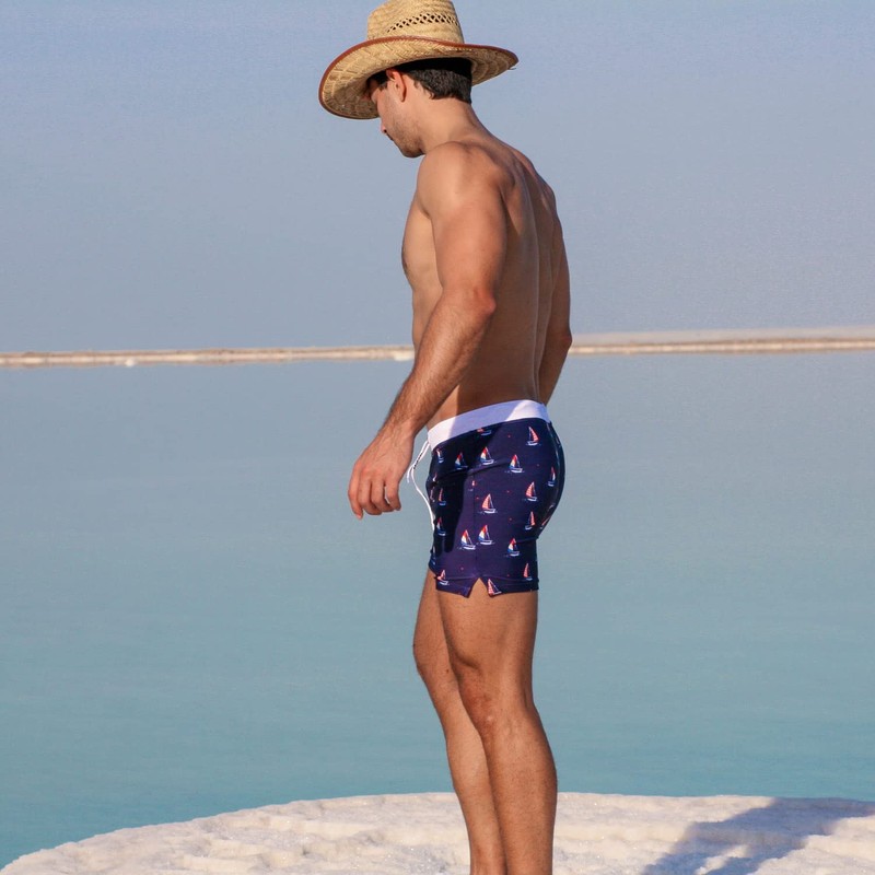 Taddlee Traje de baño para hombre con corte cuadrado, Azul / Patchwork, X-Small
